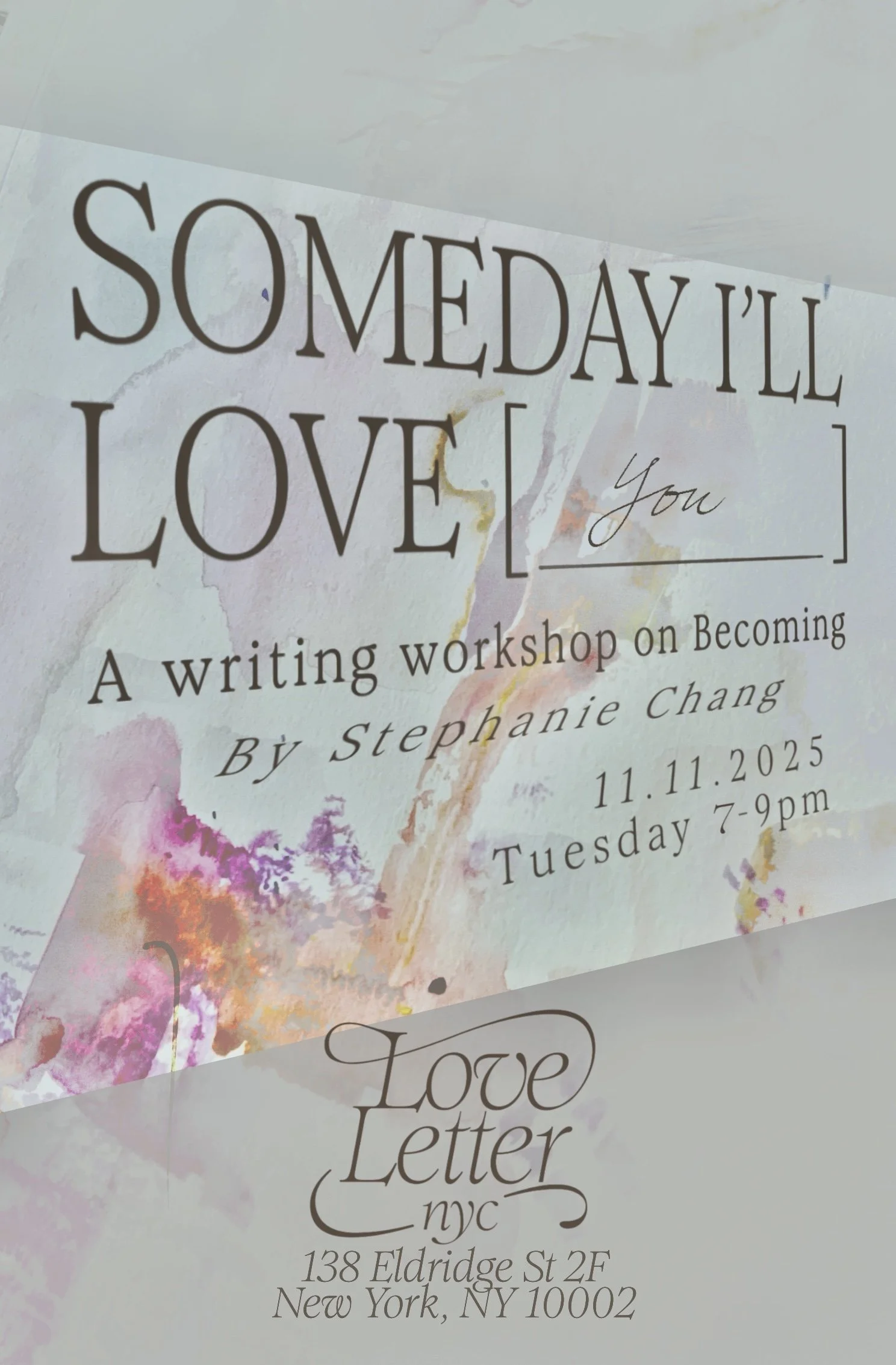 Join us for a generative in-person workshop on Tuesday 11/11/2025 where we will write toward self-love as a second chance. As the world you found and the one you left behind. As rediscovery. As the afternoon sun that echoes golden against any storm.